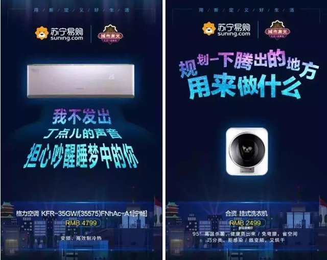 无论是崇尚经典的成功人士、追求新鲜事物的潮流达人亦或是注重生活品质的乐活一族,苏宁家电这场418城市之光寻找之旅都为他们打造了定制化、个性化的生活理想形态。无论是空调、冰箱、洗衣机还是电视、电脑,都有了更人性化的表达方式。用户与家电有了更直接的交流,家电更懂得用户的需求,用户更明白家电的意义,这正是苏宁用心定义好生活的初衷,提出的电器生活主义的新理念。 苏宁418“城市有光,一起来电”电器大促,希望与为城市奋斗的你们共创品质消费,开启品质生活新篇章。