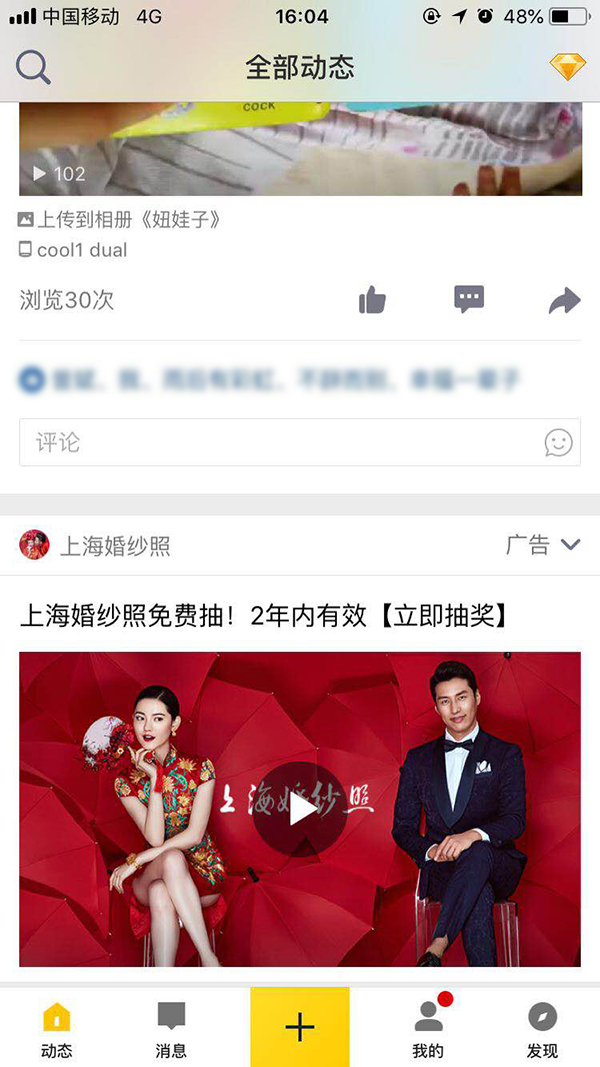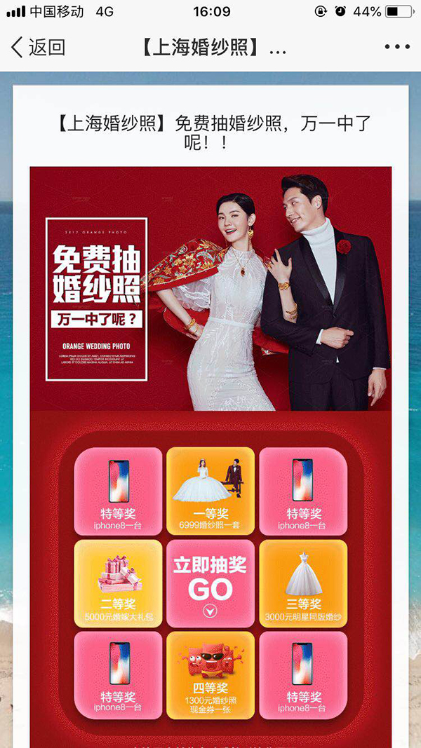 QQ空间广告投放你的效果还好吗?效果不好并不能将原因归结于广告平台,而是要研究自己的广告素材是否考虑到用户需求了哦!对于婚纱摄影行业来说投放QQ空间广告能够得到高曝光和高转化率,那么婚纱摄影行业投放QQ空间广告需要注意哪些呢? 1、广告文案设计 在婚纱摄影广告中,运用比较多的就是优惠抽奖活动,那么这个文案如何设计的更吸引用户的注意力就需要一点心思了。例如下列这则广告的文案: “上海婚纱照免费抽!2年内有效【立即抽奖】”