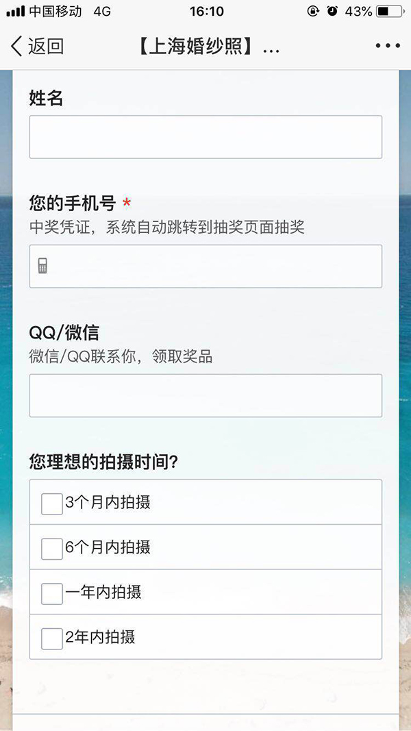 以上两种都做好之后,落地页的设计是实现客户转化的关键。因此落地页设计不能太繁琐,可以预留客户基本信息就可以了,预留信息太多会引起客户反感,造成客户流失。 以上三点都是婚纱摄影在投放QQ空间广告时需要注意的最基础的点,那么我们的广告主除了做好以上三点,还要时刻关注后台数据,并作出分析,以便更好的优化广告方案。 如果您需要在QQ空间进行广告投放,可以直接拨打我们的免费热线进行咨询,期待您的来电!