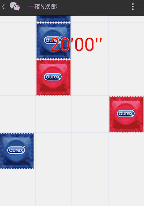 现在看来如此简单的七个字,却为当时苦苦无法进入社交圈的H5成功地植入了“社交”基因,打通了朋友圈的“分享链”。满屏的“我没有围住它,谁能帮个忙”和“我用X步围住神经猫……你能超过我吗”,撩拨地微信用户欲罢不能。 其后,各大公司和品牌火速跟进,全网都开始流行起做H5小游戏。“污妖王”杜蕾斯的《一夜N次郎》定制感最强,这个H5山寨了经典游戏“别踩白块儿”,将黑白块替换为五颜六色的杜蕾斯套套,操作可谓骚气十足,从题目到游戏内容都赚足了眼球。 不像杜蕾斯这样自带流量怎么办?在一批模仿者中,我们还发现了一个给自己加成的独特姿势——蹭热点。8月份,正值柯震东“出演监狱风云”(吸毒被捕事件),一款名为《全民找祖名》的H5小游戏借这个社会热点脱颖而出。