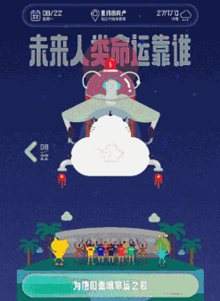 但此类通关游戏需要用户花费较多的时间或者观看详细的攻略才能顺畅通关,很多用户在前面的关卡中失败后,无法观看完整内容,用户体验较差。用户的流失就直接意味着传播量的丧失。除此之外,还有一支拼毅力的“马拉松式长跑”H5——8月份墨迹天气的《天气改变命运》,大概是H5届至今为止持续时间最长的案例了。 整整17个日夜,一天一个H5热点追击,原创动画+原创词曲+音乐互动。绝对对得起“每天都有新改变,每天都能玩一遍”的宣传语了。