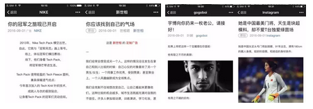 拼制作投入的,当属4月份宝马的《该新闻已被BMW快速删除》,独特的标题和精良的动效,花费应当不菲。虽然大火了一把,但并没有为H5注入新元素,总体上还是在走“吴亦凡类H5”的老路。拼资源的,就是9月份NIKE的《你与冠军的距离,就差那么一“点” 》。NIKE别出心裁地利用了新世相、gogoboi等一大批KOL资源为自己造势,H5推文标题根据账号的调性量身定制。比如与新世相合作,选择模拟文章标题为《你应该找到自己的气场》;与gogoboi合作的文章标题为《宇博向你扔来一枚老公,请接好!》。