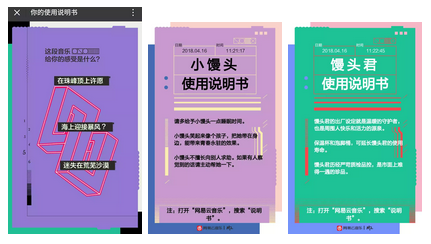2018回归,创新门槛上推,破局需聚焦“小而美” 2018年,回归期 这一年的进度条已将近过半,目前火爆的几支H5基本都是围绕用户自身来展开,“我”成为和用户交流的主题词。经过两年爆款频出的繁荣局面,用户对H5的感官、创意要求被不断抬升。H5继续突破的可能性被框定在两个方面:一是技术上,投入更高的研发成本和制作成本,但是否能有良好的投资回报比值得商榷;二是在内容上继续寻找大众情绪的突破点,但这就对洞察和创意的要求非常高。 这两条路线,目前看来都存在一定的难度,因此我们预测2018年应该是相对平缓的一年,刷屏H5很大可能会诞生在内容类里,但能够引起用户惊叹的革新级H5恐难再现。 2018年“用H5认识“我”” 开年,《2017,我的网易云音乐听歌日记》刷的朋友圈一片火红。每个人的心里都有“姑娘”,有“世界”,有“喜欢”,都有特殊的一天,都有自己的年度歌手。连你自己都没在意的细节,网易云音乐都帮你挖出来了。一点一滴都是你的足迹,喜怒哀乐都与你有关。 4月份,网易云音乐又靠着花式夸人的66句文案再次攻占朋友圈,上线当日PV轻松破千万。《嗨!点击生成你的使用说明书》,每个人都成了“材质特殊”“内存巨大”的“珍品”,偶尔“心情不好”,但只需要“多一点睡眠时间”或者“吃一点甜甜的东西”就能哄好。 同期,还火了两个DIY类H5。3月份的《我的工位,桌上有刀,桌下有猫》,以及4月份的《睡姿大比拼》。两支H5除了场景不同外,基本玩法是一致的,提供场景和道具,用户根据自己的实际情况进行选择和摆放,究其本质就是给了用户个性化定制和展示的机会。