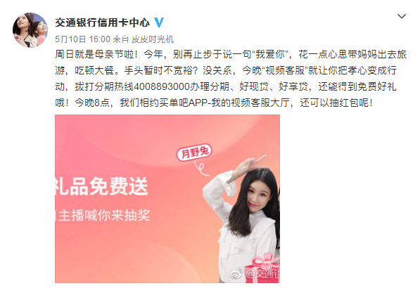 节假日是出游消费的高峰期,信用卡消费已经习以为常,这给信用卡商家带来了非常好的营销机会。借助节假日的热度在微博上发起推广博文,能够吸引更多粉丝办理哦。 2、办卡的便利性
