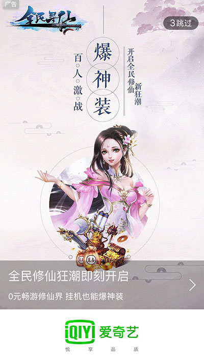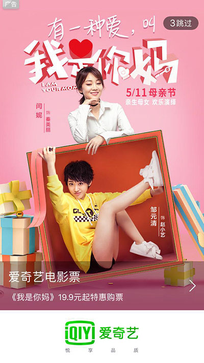 手机应用APP内的开屏广告相信大家每天都会看到,这些开屏广告位广告主带来了非常好的推广效果。那么爱奇艺手机开屏广告推广有什么特点及优势呢? 爱奇艺开屏广告特点: 1、展现时间3S
