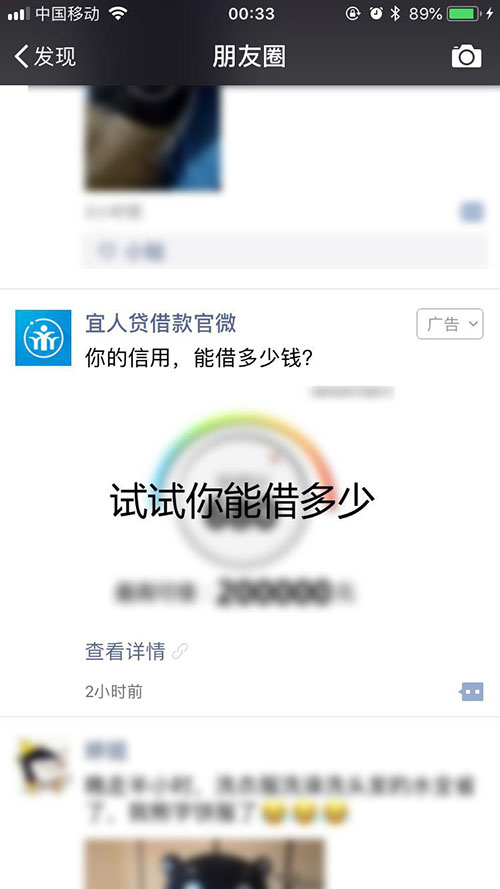 关键词:小额贷款,微信朋友圈广告