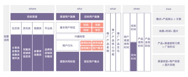 渠 道——Where 不同渠道的用户画像不同,使用目的不同,所以投放渠道类型往往决定了广告创意的主题类型。 很多广告主有这样的问题:“我同样的创意,在这个平台跑的很棒,CVR也不错,怎么在其他平台就显得乏力,成本也剧增,这是为什么呢?”其实很大一部分的原因就是渠道类型差异造成的。一般来说,社交媒体类的广告以轻松有趣的方式展现,分享类、场景类、故事类的创意更有利于CTR和CVR的提升。 用 户——Who 这里的用户,不仅仅要考虑自己的目标客户,同时要将渠道用户考虑进来。这个渠道的用户画像是什么样的,和我的目标客户的交集是什么,有哪些共同的标签,使用习惯如何,能帮助各位运营和设计大神锁定用户痛点和广告图片需要展现的场景和内容。 产 品——What 在一个广告中最重要的就是告诉用户,你是谁,干啥使的。有的广告主的广告非常高大上,相当原生,但是唯独没有告诉用户你是谁,干啥使的,导致广告创意的CTR高但是CVR非常低。 以信息流广告为例,客户在信息流阅读时的注意力停留时间仅仅为2-4秒,如果你的广告不能在这个时间内引起客户注意(戳痛点产生通感)并清晰的告诉用户你是谁,干啥使的,就很难有一个较好的转化率。 内容的展现,小编相当推荐「SCQA法则」,小编会在下一篇文章中详细的给各位客官分享。 时 间——When 广告创意的规划和制作中,需要考虑四个时间: 1.投放渠道目标用户的使用时间 2.产品用户的使用时间 3.产品的生命周期 4.广告的投放时间和时期 这四个时间会影响到广告创意的主题和内容场景,当内容和场景越贴近这四个时间时,用户的同理心和关联性的就越强。 如何规划和设计——How 一方面是如何使用上面4个W的信息,另一方面是如何推动转化。Call for Action是效果广告中必不可缺的部分,故事讲完了,你总要告诉你的受众接下来可以干点啥,所以广告创意中一定不要忘了添加Call for Action的信息。