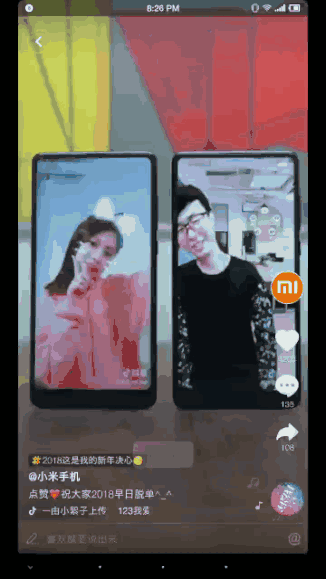 在年轻人聚集,有趣至上的抖音,越是看似不正经的耍宝操作,越能达成“四两拨千斤”的效果。 门派二:创意、黑科技派 代表品牌:小米手机 招式:15秒喜剧,高逼格黑科技 在推崇创新玩法的抖音,比逗比耍宝更受抖友们欢迎,让人顶礼膜拜到秒赞、秒关的,也更有难度的,是玩转创意和黑科技,而个中翘楚则为粉丝过百万的小米。 话不多说,上图。 隔机互动揪耳朵。