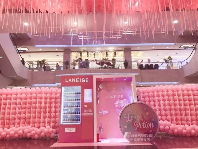 专柜开放的刻字活动现场 派样现场还设置了派样机 直接扫描二维码 就能够领取爱情灵药样品 派样现场 梦幻派样机 在此次线上线下双互动的传播中,兰芝不仅有选择性地投放爱情灵药的广告,还上线了创意H5,玩起了线上预约线下取样的互动玩法,并且还针对性的选择专柜开放刻字活动,和选择商城设置梦幻派样机。这种好玩有趣的营销方式,直接激发了年轻女性追捧的热潮。 从线上传播到线下体验,兰芝此次活动有效形成线上线下营销闭环。不仅加强了品牌曝光度,也实现了有效传播。值得其他品牌借鉴!