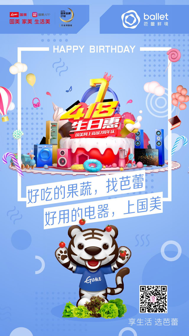 当然,它也的确做到了。 2011年4月18日,是国美网上商城正式成立的日子,一开始的418大促,只是单纯为了国美网上电商庆生。每年生日期间,国美都会给用户带来满满的福利,以及最大力度的优惠。渐渐的,每年418就演变成了电商行业的集体狂欢,而国美,也顺势将418打造成一个属于自己的购物盛典。 从20年前的市场,到现在的电商,变化的消费场景,不变的是消费者赶集的心情。折扣和让利永远都能带动消费者的情绪,而“造节”则是这种情绪的最佳出口。大大小小的电商平台都曾造过节,可真正能被消费者记住的却寥寥可数。 那么,国美究竟是如何把418做成了一次购物狂欢?他们的经历,又能给其他电商平台带来什么样的启示?这些问题的答案,都藏在这次庆生的联合海报里。 一、紧跟营销潮流,玩转品牌联合 虽然国美是一家老牌的零售巨头,但他们对于当红的营销方法依然有着敏锐的洞察力。 这两年联合营销太火了,像是网易和饿了么的丧茶,知乎和必胜客五道口大学,特别是去年感恩节时,品牌中的段子手杜蕾斯,突然@13个品牌进行互撩,还得到了对方的回应。前段时间锤子发布会,也是一口气调戏了20多个品牌,刷爆朋友圈。随着新媒体的发展,品牌们越来越热衷于团队的作战方式,通过自身影响力的叠加,造成事件性的效果。虽说品牌联合不是很新鲜的玩法,但这两年却在数量和联合手段上有明显的突破。 而国美,也是看到了这种营销方法的优势,不但勇于尝试,还玩出了自己的特色。趁着网上电商即将到来的七岁庆典,他们联合一大波品牌厂商发布了以“庆生”为主题的联合海报。 每张海报上,都有代表国美的形象“小虎”与该品牌特有的元素,文案部分也是由品牌宣传语和庆生词两个部分组成。 海信&国美 迅游&国美 芭蕾鲜境&国美 贝米钱包&国美 近报融媒&国美 拉卡拉&国美 美的&国美 猫眼电影&国美 尚装网&国美 蜜思肤&国美 中公教育&国美 蓝犀牛搬家&国美 太太乐&国美 啡动力&国美 即使海报的主题是“庆生”,国美也没有喧宾夺主,在每张海报最核心的位置,都有关于品牌厂商的宣传语。对于一次联合营销来说,能否被用户记住很重要,但能否让所有参与的品牌都获利,才是我们最关心的问题,只有多方共赢的营销,才是品牌联合最成功的结果。 从海报的细节之中,我们也可以看出国美和品牌厂商之间的关系,他们一直追求的是一种互利共赢的状态。对于国美来说,自身的发展重要,每个品牌厂商的发展同样重要,每张庆生的海报,都是国美为品牌的质量背书。而对于与国美有合作的品牌厂商来说,这次的合作是品牌厂商对国美的信任,是对它未来发展的美好期待。它们的积极响应,也从侧面凸显了国美418大促的巨大影响力。 二、积极转向“新零售”,扩大产业布局 虽然国美错过了入局电商的最佳时期,但这也成了自身发展的潜力和动力。去年,国美电器更名为国美零售,在业内称之为“去电器化数字化营销哪家好”。为了抢夺新市场,在新领域上总能看到他们的身影,在新的战略中,他们一直以“新零售”的理念示人。 从这次发布的联合海报中,国美的事业版图也可见一斑。众多的新领域中,值得一提的是年初入局的生鲜市场,国美通过与地方优质农产品的公用品牌建企业的营销方案设,以及线上线下流通渠道的建设,国美已经从零售端延伸至供应端的上游。 生鲜领域的竞争虽然激烈,但国美也有自身的优势,多年来,他们积累了遍布全国的1600家实体门店,强大的供应链和物流渠道,在全国4万余个乡镇区域实现了无盲区服务,在加上互联网大数据以及云计算为后台的技术保障,这些都成了国美生鲜乃至每一个新领域的巨大优势。 本着“新零售”的理念,国美一直丰富着渠道布局,也试图通过渠道的优势,给消费者带来更丰富的购物体验。 从这次合作的众多品牌厂商中我们可以看出,国美的布局早就延展在电器以及垂直领域之外。国美最初主打的是家电,在消费升级的大趋势下,他们发现单一、平面的销售方式已经无法提起消费者的兴趣,只有在特定的场景中,才能进一步激情消费者的购物欲望。 国美关于零售梦想是:用户需要的东西,都能在这里买到。从一开始的家电、家具,到后来的家装这类的硬件设施,到消费者日常需要的美妆个护、食品酒水,甚至是教育培训和游戏旅行等,他们都有涉足。大概,这才是真正意义上的“一站式”购物。 说到这里,国美成功“造节”的原因也就显而易见了,所谓的购物狂欢节,绝不只是虚假打折甚至是销售伪劣产品的噱头,而是在一个特定时间理给予消费者最大的优惠和让利,通过丰富产品品类给消费者带来真的便利。得到了消费者的口碑和认可,才能在“造节”这条路上走得远。 对于国美来说,这次的联合营销是锦上添花,在为购物狂欢节造势的同时,又向消费者展示了产品的品质和多样化。 过去7年,国美一直在电商之路上努力追赶,但有一点可以预见,它离自己的梦想越来越近。期待将来,它会给我们带来更多的惊喜,会有更多的品牌厂商为它庆生打call。