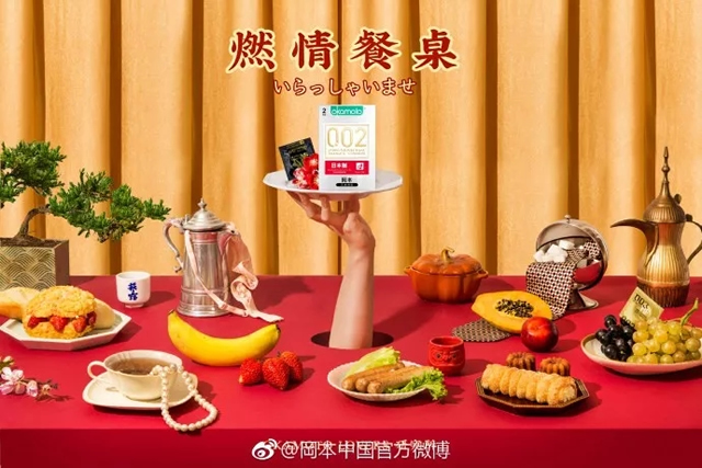 杰士邦在这个特殊的日子里好像没有什么大举动,借势还是不够积极呀~ 别忘了我!冈本来势汹汹 可口可乐和百事可乐打架,七喜萎了! 王老吉和加多宝打架,和其正虚了! 杜蕾斯和杰士邦打架,冈本怕了! 小编觉得,杜蕾斯和杰士邦这天天搞事情的热度,冈本再不做点什么就晚了~果然在4月19日这个特殊的日子里,冈本终于坐不住了!冈本结合了吃与爱,发布了四个小剧场海报!情人的眼里只有两件事,吃,和对方。于是,餐桌酝酿欲望,食物制造情愫。燃情餐桌正在上演!