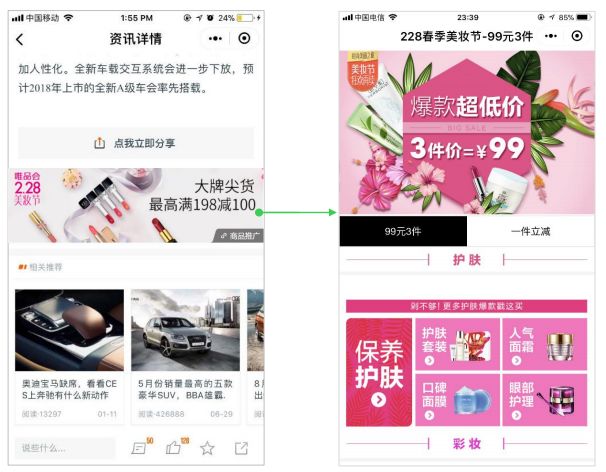 这表明了异业合作的精准度大大提高,对于品牌方和流量主来说,选择合适的异业合作,不论是对于活动本身的推广、流量的变现、还是给用户带的增值体验,都起到如虎添翼的作用。让品牌主钱花得更加精准,效果也看得到。 三、小程序广告上线带来的影响 对流量主而言,合理选择与自己小程序用户匹配的品牌方或活动,不但可以实现流量变现,还能给自己的小程序用户带来增值体验。对于广告主来说,更是超棒的机会,直接可将用户转化,跳转外链不限制,省去中间多余环节,在内容中让用户产生购买冲动,动动指头就能转化了!所以,如何做好这张窄窄的图片,是每个广告主的必修课。 这里总结几点供参考: 1、整体构图简洁大方,色调明亮统一; 2、清晰标明品牌; 3、卖点明确; 4、适当使用人物(帅哥、美女、名人)将用户从文章中吸引过来。 另外,文案中“Hot”、“促销”之类的字眼不要用,会被和谐。个人认为,小程序广告位的开放,带来了一大波流量的转化,不仅让小程序流量主创收,还完善了小程序整个闭环体系。让广告信息随着(游戏、内容、电商、门店等)小程序的各种玩法,裂变,实现拉新、促活、转化等一系列的需求。广告主又多了一个推广转化渠道,具体效果如何,一起来期待一下吧。