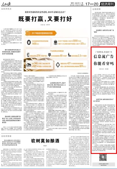 下面,小编带大家重温一下互联网广告法相关资讯及规则,希望能给大家带来一些参考和帮助。建议收藏此文,作为后期创意素材参考。 PART 1 、互联网广告管理暂行办法 以下为部分内容: 第五条 法律、行政法规规定禁止生产、销售的商品或者提供的服务,以及禁止发布广告的商品或者服务,任何单位或者个人不得在互联网上设计、制作、代理、发布广告。 禁止利用互联网发布处方药和烟草的广告。 第六条 医疗、药品、特殊医学用途配方食品、医疗器械、农药、兽药、保健食品广告等法律、行政法规规定须经广告审查机关进行审查的特殊商品或者服务的广告,未经审查,不得发布。 第七条 互联网广告应当具有可识别性,显著标明“广告”,使消费者能够辨明其为广告。 付费搜索广告应当与自然搜索结果明显区分。 第八条 利用互联网发布、发送广告,不得影响用户正常使用网络。在互联网页面以弹出等形式发布的广告,应当显著标明关闭标志,确保一键关闭。 不得以欺骗方式诱使用户点击广告内容。 未经允许,不得在用户发送的电子邮件中附加广告或者广告链接。 第九条 互联网广告主、广告经营者、广告发布者之间在互联网广告活动中应当依法订立书面合同。 PART 2 、《人民日报》点名批评信息流广告 2018年1月底,《人民日报》第17 版刊文《广告即信息,信息即广告:信息流广告你能看穿吗》,直接点名信息流广告。文章先扬后抑,先是肯定了信息流广告这一新兴的优点,然后重点突出了信息流广告的弊端,比如容易使消费者很难分清信息的属性,出现虚假广告、诱导性广告等,《人民日报》最后还直接呼吁监管部门介入,净化手机端信息环境。