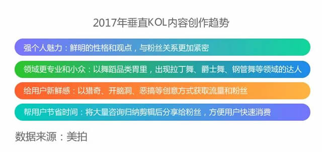 中国的媒体环境是碎片化的,消费者接收信息的渠道也是多元化的,仅靠投放品牌广告已经不能全部覆盖目标群体,需要更碎片化、垂直化、及时性的投放渠道,垂直型KOL的崛起为品牌主提供了新的选择,这也是市场发展及精细化运营发展的必然结果。 垂直型KOL的粉丝量虽然无法与明星和网红相提并论,但是他们与粉丝的关系更加紧密,在垂直领域讨论的内容更有深度更加频繁,因此转化率极高,成为品牌与消费者进行沟通的最有效途径之一。