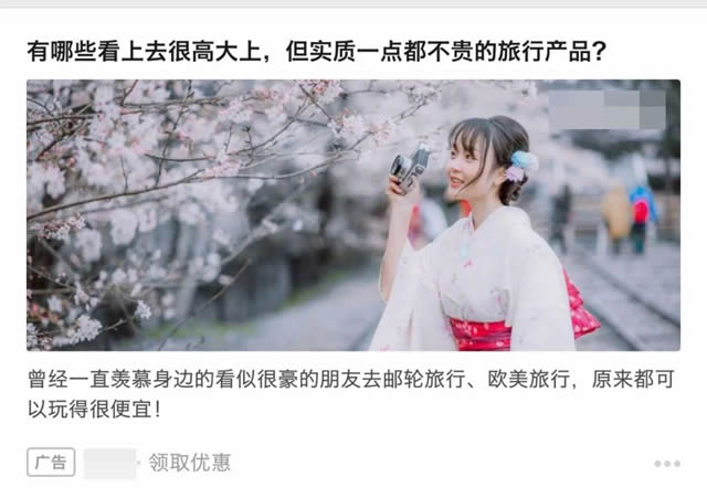 (报告来自@艾瑞咨询) 不难看出,近几年网络广告市场规模几乎成千亿级的趋势增长。在刚刚过去的2017年,网络广告的关键词为“智能化”与“原生化”。广告主对于网络广告的玩法更加熟悉,广告类型也随着原声广告的发展而不断进化,广告与内容之间的界限越加模糊。那么目前主流的移动程序化广告到底有哪些呢?对于不同的广告形式各有哪些特点和优势?广告主又该如何选择呢? 信息流广告 目前最流行的广告形式。顾名思义,即是出现在社交媒体用户浏览动态中的广告。目前主要形式有: 1.大图模式;