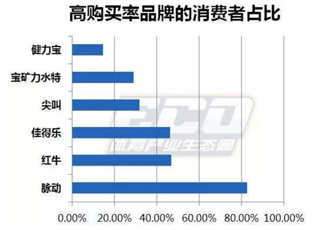 品牌混战后时代,从何处寻找机遇? 虽然在功能饮料市场品牌混战中脱颖而出,但摆在东鹏特饮面前的问题依然严峻。在功能饮料之下还有能量饮料与运动饮料的划分,但消费者对于这两个细分品类的区别并没有深刻认知,然而二者在营销领域布局上却泾渭分明。尤其在体育领域,运动饮料和维生素饮料品牌,在品牌识别度和购买率上都远高于能量饮料。