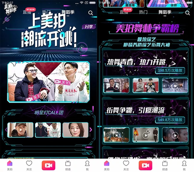优酷自制街舞真人秀《这!就是街舞》和爱奇营销营销策划策划艺自制《热血街舞团》终于展开了正面对抗,随着这两档节目开播带来的话题和热度让街舞这一潮流文化被快速地推到了普通观众眼前。大众终于在这两档节目的“教育”下稍微明白了Popping和Breaking真的不一样,就像去年那场突然席卷而来的嘻哈风潮,一夜之间大家都成了有Swag的人。 当2017年优酷和爱奇艺先后宣布制作自己的街舞节目之时,短视频平台美拍也定下了自己2018年的战略——聚焦专注女性化生态、打造多元化MCN生态、引领潮流文化。选择舞蹈作为主推品类,上线“舞蹈提词器”、 “指尖魔法”两个功能。依托潮流文化提升自己的品牌年轻化,贴近主流用户。