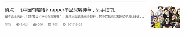 做此类视频播主一定要有的技能是——能买到别人买不到的东西。这样的技能就像谁要做大胃王视频一定得特别能吃还不胖,想要做英语教学必须得擅长模仿多国口音。 和他类似的博主还有Crewkicks,涉及的内容比前者广泛,曾经盘点过《中国有嘻哈》中出现的潮流单品。当中提到的大部分东西和笔者属于初次见面,让人深深体会到了人类在面对喜欢的事物时,只要热情不灭经过长时间的积累一定可以成为某方面的专家。