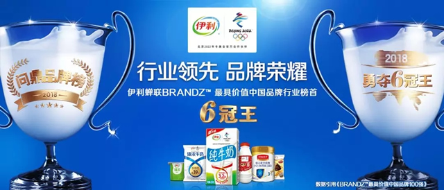 二、世界品质,双奥背书 众所周知,好口碑、好营销的基础是好品质,有了好品质,营销才能事半功倍,口碑才能有所依托。此次伊利六连冠BrandZ?最具价值中国品牌百强榜,也意味着伊利品质得到了中国乃至世界的高度认可。 那么伊利到底是如何打造世界级品质呢? 为了严格保证产品品质,伊利从源头上把控每一个环节,不止所有的原辅料、设备等都精选自全球最优供应商,甚至将工匠精神贯穿到产品生产、运营等各个环节,确保每个环节都是100%用心、100%安全、100%健康。 就拿检测设备来说,截止到2017年年底,伊利就花了6.35亿,全年检测投入就近3亿! 而在质量标准上,伊利参考各大进口国及出口国的国标,在此基础上形成了更严苛的伊利标准,因此还推动了中国乳制品全行业质量标准的提升。 此外,伊利还有着严苛的管理体系,聚焦“全球最优品质”,整合全球优质资源,持续升级全球质量管理体系,将严苛的质量管控标准贯穿于全球产业链。 从设备到生产到管理等各个方面,可以说伊利真的是视品质为生命! 因此诸如英国著名品牌评定机构“Brand Finance”推出的2018年度全球品牌500强榜单,伊利再度成为唯一入选的中国乳制品企业,甚至超越了雀巢咖啡、卡夫、亨氏等世界知名食品品牌;亦或者是2017年4月,全球领先品牌咨询机构Interbrand发布“2017最佳中国品牌价值排行榜”,伊利品牌蝉联食品类排名第一的成绩,毫不夸张的说,真的是实至名归。 这里说到对其品质认可,就一定要提双奥会,伊利自2005年便与北京奥组委正式签约,而在2008年,更是成为了国内唯一一家符合奥运标准、为奥运会提供乳制品的企业,此后又赞助了2009年世博会,名声逐渐扩大并影响到世界范围,到2012年伊利成为了中国体育代表团唯一营养乳制品服务伦敦奥运会,之后的奥运会场景中总有它的身影,“奥运品质”也成为了消费者耳熟能详的伊利代名词。