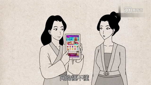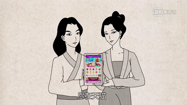 闺蜜劝诫花木兰不要上战场,谁知影片画风一转,花木兰拿出手机上了“天猫”,一下子就解决了军用物资的问题。