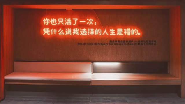 而网易云音乐最重要的乐评也出现在了酒店里。在每层的电梯口,都有网易云音乐乐评的装点。乐评下方还有舒适的长凳,充分满足大家拍拍拍的需求。