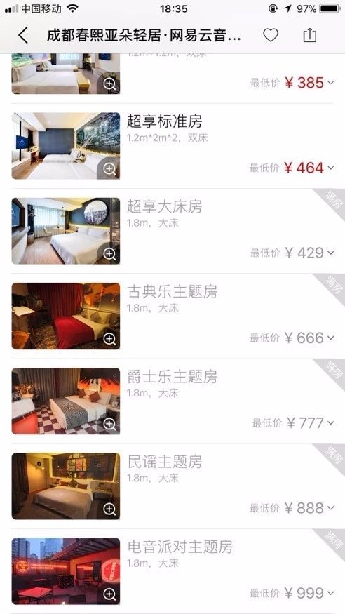 目前,古典乐主题房售价666元/天,爵士乐主题房售价777元/天,民谣主题房售价888元/天,而自带大露台的电音派对主题房则售价999元/天。当你还在犹豫去体验哪间的时候,你会发现,这个烦恼是多余的。因为,太!热!门!了!根!本!订!不!到!