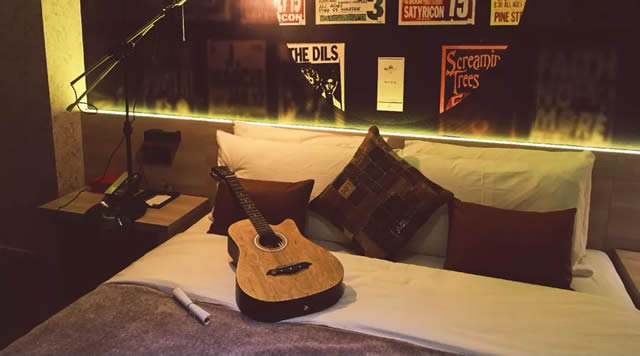 民谣主题房 弹起木吉他,唱一首喜欢的歌。都说听民谣的人有故事,这间房间大概会成为一个新的故事发生地。