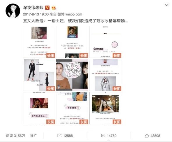 直男改造大火之后,徐老师马不停蹄推出直女大改造,直接带起了全网的改造风潮。