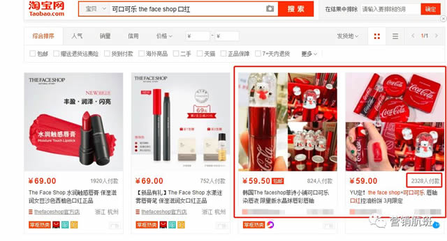 眼影盘上还有可口可乐的经典瓶盖。 由于这款产品只在韩国的the face shop上架,国内官方尚未发售,但是这并不影响少女们的购买啊,笔者在某宝随便搜索了一下,就出现了“45天发货,不接受退货”的“不平等”购买信息,但是这并不影响产品的销售量。
