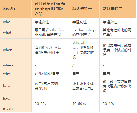 一个是国内饮用水的老大品牌,立志要跻身美妆领域的佼佼者。一个是拥有一百多年的碳酸饮料品牌,已经成为了品类的代名词,却横向跨界各品类,触角延伸至快时尚的各领域。虽然都是饮料品牌做化妆品,但是从他们的产品和对外所传递出的信息,可以看出这两个产品的洞察是完全是针对不同的场景和不同的消费者: 可口可乐×the face shop的产品洞察: 用户要完成的消费任务:买日常美妆产品 你的主要用户:年轻女性消费者,主要集中在一二线城市,消费力未必很强,但是喜欢高颜值有个性的好玩东西,很看重产品的社交属性。