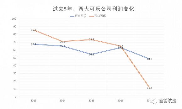 机会洞察总结: 对于非一二线城市的女性来说,面膜的日常护肤没有成为一个非常高频刚需的产品,或者是说,用面膜的护肤意识以及消费心理账户没有那么多。 而对于一些有护肤意识的消费水平更高的女性来说,进口产品在各电商平台真假难辨,他们更加青睐面对面看得到的产品,在一些官方店线上线下销售; 养生堂的面膜从某种程度上解决了可达性的需求:他们需要一款看上去更加科技感、品质感、有档次的护肤产品满足自己的高端需求 对于这些女性,由于进口产品在国内的价格相对较高,国外代购途径没有那么便利的情况下,而养生堂凭借多年饮料的渠道下沉资源能够迅速在非一二线城市迅速铺市的时候,大集团对新产品的政策倾斜可以很快的俘获第一批核心用户。而产品本身主打的高端诉求可以满足非一二线城市的消费者高端护肤的需求。甚至会成为非一二线城市高端美容护肤专业线的产品。 所以通过对这两个品牌产品的机会洞察可以发现,虽然两个头部品牌做化妆品的战略目的是完全不同的。 年轻人健康意识觉醒,可口可乐需要全新的产品矩阵和利益驱动 2017年,可口可乐和百事可乐两家可乐公司都业绩惨淡,净利润分别下滑了80%和23%。新一批成长起来的年轻人越来越少喝碳酸饮料,更加注重健康导致这两家公司的碳酸饮料系列产品先销量下滑。