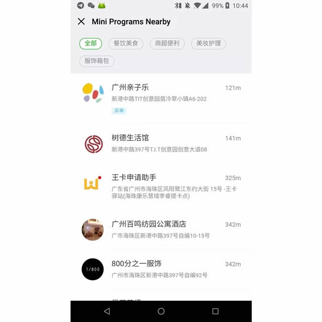 早在去年,微信就开始测试各式各样的“小程序广告”。除了文章底部的传统广告位之外,小程序现在还可以投放文内插入广告。公众号流量主可以选择插入广告到文章中间,直接向用户显示广告。 除了公众号,现在小程序投放广告还包括朋友圈广告、小程序广告还有小游戏广告。这些不同位置的广告可以满足小程序广告主的不同需求。 目前,微信公众号、小程序两个平台的广告都是以点击量为基准进行计费,而小程序广告目前只支持图片样式形态的广告。想要投放广告,你可以到公众平台后台,找到“广告主”选项进行投放。 2. 附近的小程序