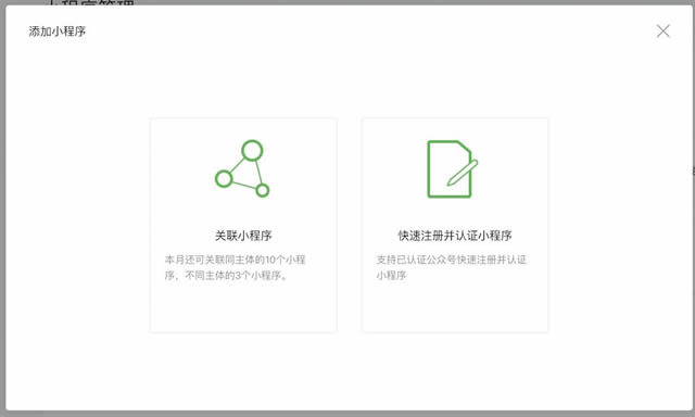 小程序正式推出后不久,微信就推出“公众号关联小程序”的功能。关联后,不仅能在双方的资料页中,显示“相关公众号”或“相关小程序”,还能在关联操作完成时,直接向公众号粉丝推送“关联成功”通知。 想要让小程序关联公众号,小程序开发者需要给公众号运营者提供 AppID;之后,公众号运营者登录公众号后台,在左侧找到“小程序”-“小程序管理”。 在“小程序管理”页面,点击右上角的“添加”按钮,在弹出的窗口中选择“关联小程序”。公众号管理员扫码后,就能填入小程序的 AppID,并选择小程序是否需要推送给用户、是否在公众号页面展示。
