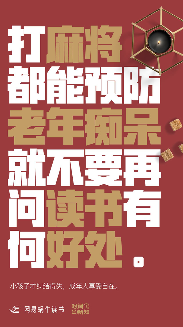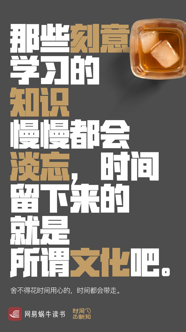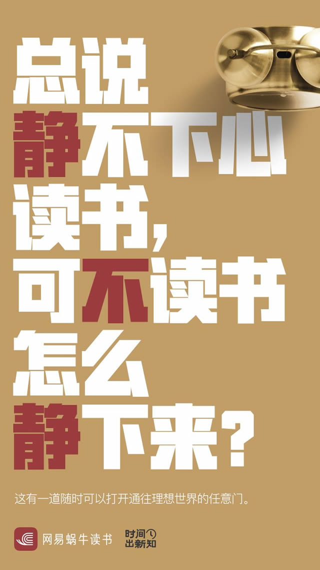 网易蜗牛读书推出了“时间出新知”品牌主张系列海报,击中年轻人关于读书的五大迷思—— 1、读书有好处吗——成年人不纠结得失 2、读书的驱动力——打开理想世界的任意门 3、没时间读书——得一寸有一寸的欢喜 4、读书有趣吗——懂的越多,越发现一切并没有什么了不起 5、什么是文化——时间留下的才是文化 而年轻人到底还读书吗?网易蜗牛读书一周年系列活动中,年轻人已经用上了“时间出新知”的各种文化周边,玩得不亦乐乎。
