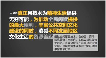 前不久网易蜗牛读书馆宣布开始动工,将在今年暑假和公众见面,免费入馆,免费看书。一直说要“推动全民阅读”的网易蜗牛读书并不是说说而已,而是真的把丁磊的文化情怀落地了。 2、扶持-年轻人的阅读交流