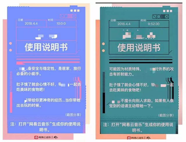 版权问题,本应是一个音乐应用的核心命脉,而网易云音乐却屡次在版权上栽跟头被网友诟病,既然在这样的情况下为什么网易云依然可以频繁刷屏?就基于这次的“使用说明书”,我们来做个简单的分析。 01.套着说明书的外衣,实为心理测试游戏 虽然网易云把这个游戏称为“你的使用报告书”,但这种填名字、做几道题,最后生成一份报告的玩法,是不是感到似曾相识?其实这就是心理测试类的分型游戏,换汤不汤药,多次在朋友圈刷屏屡试不爽,举个上中央电视台广告例子,正如之前火遍双微最后被辟谣的“左右脑测试”。 如果你还足够细心的话,在朋友圈翻阅过多张结果图整合营销的意义后,你会发现翻来覆去都是那几个描述性的句子,如此雷同又不会让人反感,这是为什么呢?原因是利用了心理学上的"巴纳姆效应",对于那些笼统的、具有普适性的人格描述,人们更加倾向于认可并接受它。 对于这些描述,有网友将其汇总,共有66条描述文案,大致可以分为以下几类,社交类、段子类和治愈类。 社交类: XX喜欢自由,适合经常带出去放养。 肚子饿了就会心情不好,带XX一起去吃美味的事物吧! XX能带给你更神奇的经历…当你带他出去玩的时候。 XX不擅长向别人求助。如果有人察觉到的话请主动帮他一下。 XX拥有巨大内存,收到的关心(和红包)他都会记得。 段子类: XX的光芒太耀眼,但也不至于会刺瞎别人。 如果你觉得XX发量开始减少,那一定是出现了幻觉。 保温杯和泡脚桶,可延长XX的使用寿命。 XX按时睡觉的程序被设计的太复杂,很难执行。 治愈类: XX能通过每次挑战完成升级,获得更高的智慧和运气。 XX拥有迷之运气,中乐透的实力异于常人。 XXX是能带来元气和灵感的迷之吉祥物。 XX听到喜爱的音乐,就就能触发运气开挂的效果。 XX心心念念的梦,会在某个不经意的时候实现。 从这部分的文案来看,带来正面积极情绪的句子占了绝大多数,当你经过煞有其事的测试后得到的都是赞美和表扬,试问,谁内心没有点小骄傲呢?