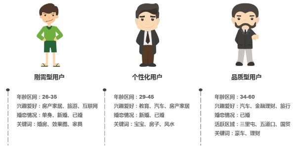 No 2、了解产品有哪些受众 通过收集的用户标签及对用户的理解,就可尝试搭建用户画像了,根据不同类型的用户,选择不同的受众定向,在做推广前,我会问自己三个问题 用户:分别有哪几类用户,会对产品感兴趣? 场景:用户分别活跃在在什么场景,有什么行为特征。 需求:产品可以满足该类型用户哪些需求,和现有的解决方案对比怎么样? 以家装行业为类,我把受众分为以下三个类别