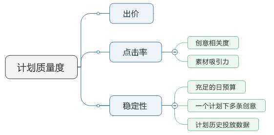 根据这个思路我们判断影响计划曝光的三要素是出价、点击率、稳定性。而出价直接影响到转化成本,一般肯定是尽量出低价。账户稳定性是投放成熟阶段的自然结果,而且不可控因数较多。所以点击率才是获得曝光的可控重点优化对象,如果计划点击率远远优于大盘,渠道商也会考虑到用户体验,计划创意受欢迎,而获得更多的曝光。