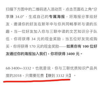 活动以文章《这一次,三联搞了个大动作》宣告开始,此篇文章在活动仓促结束之后,阅读量才刚刚过万。可想而知,《三联》本想《听周刊》与往期的付费内容一样。限时一周,基础变现,稳定引流,却没想到,由于太过火爆,仅持续三天就因服务器崩溃导致活动提前结束。对于《三联》杂志粉而言, “人人都欠三联一本杂志钱”的情怀得到了慰藉;对于知识付费这片红海而言,《三联》刷屏再一次证明:分销模式足以成为知识付费新的强心剂。 支撑起此次刷屏的,是《三联》发展二十多年积累下的忠实读者及良好的路人缘。纸媒的没落让迟迟没有移动平台的《三联》成为读者怎样的方法精准引流心中的白月光,知识付费用户习惯的养成,更是帮助《三联》,将他们的读者培养成一个个摩拳擦掌随时愿意掏钱的互联网用户。天时地利人和缺一不可,所以并不是KOL够亮眼、定价够便宜、内容够超值、分销够豁得出去,就能成就如此案例。能成就《三联》现象的,还是《三联》本身。 直到今天,当同类媒体竞相在内容上“缩水”时,依旧傲娇的坚持做一本足160页周刊杂志的《三联生活周刊》,低估了互联网的丰厚与慷慨。 但互联网是真的丰厚与慷慨吗? 如果不是《三联》,阅读量刚刚过万的文章足以掀起社交网络的刷屏之势吗?如果三阿迪达斯有没有什么公关危联选择将《听周刊》的内容以文字的形式,原封不动按期发表在杂志中,杂志的销量会变的更好吗?甚至,如果没有采用分销模式,《三联》会被卖成爆款吗? 知识变现的重心还是在“变现”二字。三联此次活动采取三级分销的模式,价值68元的产品,每邀请一位好友加入,可获得34元奖励金,而好友的好友再次加入,可继续获得17元奖励金,另外,当五位好友完成购买,还可获得170元额外现金奖励。