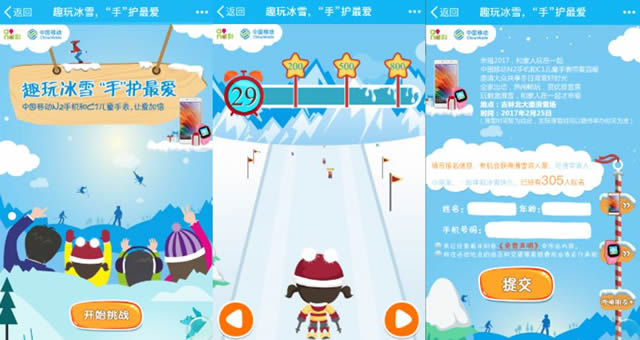 H5专题页 趣味游戏已经成为吸引用户玩乐其中的重要载体。用户点击“开始挑战”按钮后,画面展示出前行状态的滑雪赛道,左右控制键可以调整“滑雪选手”的行进方向,当触达赛道上面分布的N2手机和C1儿童手表后,即可获得加分。弹出的分值上方显示出:双向通话网站建设哪家靠谱、快速充电、4000mh大电池、智能问答、儿童英语等字样,在激发用户参与的同时,也将产品的优势功能一并生动展现。 游戏结束后,用户可填写报名信息,将有机会获得滑雪双人票,并可与小朋友一起免费观看滑雪比赛,真实体验冰雪季所带来的快乐。 此外,本次活动还提供了专题页软性推广资源,在PC端的搜狐体育频道、冰雪频道以及搜狐新闻客户端体育频道的首页头图及焦点图位置,通过强势展现Logo的方式,将广告主信息露出,双端推广资源的总曝光量达到31752891次,总点击量为34928次。