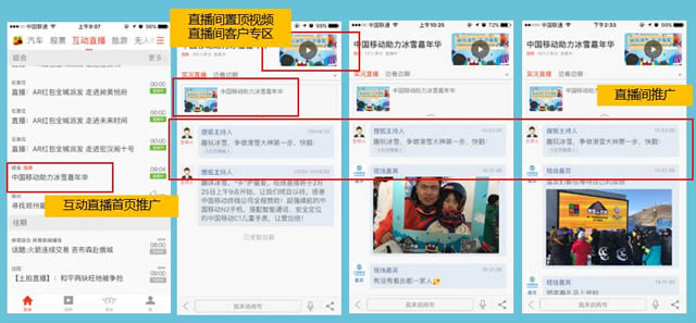 接下来,搜狐与中国专业的户外运动综合平台——8264联合举办滑雪活动,体现广告主权益,放大产品讯息。 在移动端方面,受年轻用户青睐的直播也发挥了重要的推动作用,搜狐新闻客户端互动直播间借助首页推广文字链、置顶视频等方式,吸引用户参与讨论,活动当天在线人数达19万;千帆主播在微信朋友圈和直播过程中多次口播广告主权益,直播间最高峰值在线人数达4.6万。 为了最大化体现广告主权益,搜狐积极调动线上线下各端资源,通过节日营销、亲子营销与情感营销等方式,使目标用户对中国移动有了全新的品牌印象,借助一场“有温度”的推广,拉近了消费者与品牌的距离。