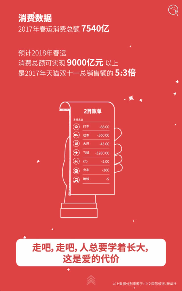 抢票、对象、年终奖可以说是每年春节的“死亡三连”,而其中的抢票更是关系到一年到头能不能回家,小红书入驻费用所以每年春运,都可以说是开年的最热话题。作为全世界人口第一大国,这么多人在同一时间段内完成地理的转移,可谓一大壮观之景。而这次这支刷屏的H5,选择用扎心的方式告诉每个人,春运大迁徙的背后,到底是什么。 在H5中,以春运的旅客发送量数据为起点,把打拼者作为连接点,一直延伸到中小微企业的经济贡献量。站在一个官方的角度,借势春节的特殊节点,营造出一种迁徙的壮观氛围,条条戳心,直击痛点。 一.迁徙的意义 为爱回家 根据新华社数据统计,去年的春运旅客发送量高达29.78亿人次,这相当于非洲、欧洲、美洲、大洋洲的总人口搬一次家。小时候我们一心向往远方,但真正到了离家在外的时刻,才发现家才是最美的远方。不管是北京还是上海,不管是广州还是深圳,每一个大城市的角落,都有这些人的影子。 “有钱没钱,回家过年”,无论你在外是荣耀还是卑微,家都能给你最温暖的港湾。每当春节的脚步将近,无数在外漂泊的游子踏上返乡归途。这些在异乡的打拼者总是在家稍作停息,匆忙离开深深挂念的地方,踏上追梦的旅途。每一次迁徙,大概都是一场现实和理想的激烈碰撞吧。