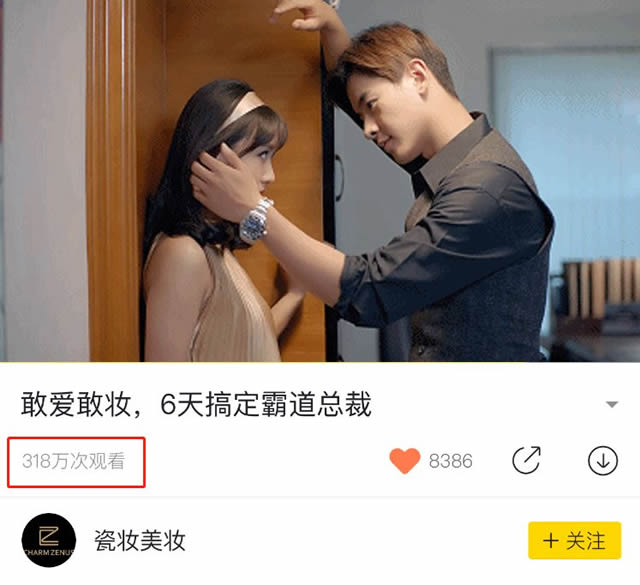 今年农历新年来得特别有意思,年廿九是2月14日情人节,然后还有3月2日的元优秀的危机公关事件宵节,3月8日的妇女节。春节夹在几个与女性特别有关联的节日其中。(难道这就是传说中的甜蜜夹击?),加上今年刚好是狗年,是要给单身狗天降福利还是迎头暴击? 所以过年期间除了传统氛围,还能感受到浓浓的女性气息。这个新年过完没多久,与女性密切相关的美妆品牌瓷妆,已经开启年后第一波的刷屏传播。 登上微博热门话题TOP3 当大家还沉浸在狗年农历新年的时候,从2月25日起,一部暴击单身狗的短视频《瓷妆敢爱敢妆 六天搞定霸道总裁》在各大平台刷屏,朋友圈/微博疯传、上微博热门话题榜、3天视频在秒拍点击量网络营销师怎样突破300W!全平台总点击量突破500W!,话题#狗年脱单技能#顺利登上微博热门话题榜TOP3! 不少人看到广告后忍不住“剁手”,因为这次瓷妆通过狗年脱单作为传播话题;以用口红不同色号撩男,号召妹子们一起挑战48套脱单妆容为互动方式,发起了轰轰烈烈的“敢爱敢妆”运动,以病毒视频为传播内容载体,达到传播效果最大化。 主题吸睛,直击年轻女性触点 互联网社会化传播,最重要的还是话题够吸引,能够引起共鸣。“敢爱敢妆”说的正是当下女性在社会上的状态,被动?拘束?保守?NO!NO!NO!你以为还是在清朝吗?当下女性就是无论在各领域各场合都已经独当一面,在男女关系的游戏中掌握越来越主动的地位!90后00后女生努力地把自己变得更出色更出彩,勇敢地去追求自己喜欢的事物,包括自己喜欢的异性。瓷妆“敢爱敢妆”的主张,就是鼓励年轻女性活出更出彩的自己,过自己想要的生活,追求自己喜欢的男性。 迈向更出彩自己的第一步,从最能吸引眼球的外在妆容开始。情场如战场,口红就是你的秘密武器!这个就和瓷妆【你原来可以这么美】的品牌定位不谋而合。 悬念视频,让人欲罢不能 内容才是王道,说到底还是离不开短视频,那到底视频是说什么呢?初入职场小女生,只用了短短6天时间,以菜鸟的身份轻松搞定了帅到舔屏的霸道总裁。虽然是这样老土的梗,但也是大众女生最想要实现的幻想。而且还有很具体的职场技巧,所以短视频能够吸引大家,是有它的道理。 第一天,锁定目标