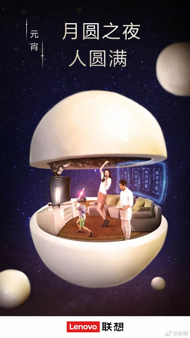 联想 #元宵节# 今夜,月圆满,人团圆。 咬一口汤圆,满足一年份的温暖。