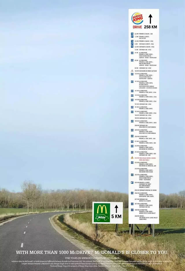一直以来,麦当劳都喜欢在广告牌上做文章,种种脑洞大开的创意设计堪称一绝。 还记得麦当劳的法国路牌广告吗?为了怼竞争对手汉堡王,麦当劳不仅为自己做了个广告牌,还非常“好心”地帮竞争对手汉堡王做了一个史上最高道路指示牌,并标明前往汉堡王的详细路线。 借此广告牌,麦当劳既突出了自家门店又多又便捷的优势,又讽刺了汉堡王门店又少又难找,一举两得。 用广告牌怼竞争对手只是麦当劳的惯用伎俩之一,除此之外,麦当劳还十分喜欢借助气象现象来搞事情。比如用广告牌上的咖啡泡高度告诉你实时降雪量。 再比如让自己的产品——早餐蛋堡与朝阳同时升起: 6:26 6:47 7:14 怼对手、指路、和气象现象结合……麦当劳所做的诸如此类抖机灵的广告牌可软文推广流程以说是不胜枚举。这不,最近它又出了新的广告牌,只不过并没有按套路出牌。以往的广告牌不管花样有多少,麦当劳的Logo总是完整的。而这次,虽然也是指路,但麦当劳的Logo却是残缺不全的。 on your right on your left next exit just missed us 这四个广告牌,其实是麦当劳从自己Logo上截出来的危机公关主体有什么,叫 follow the arches(跟着拱门走),不同的弯曲方向表明了麦当劳门店的阿里云waf方位。 将Logo弯曲部分与路标关联在一起,以此做成指路牌,麦当劳这波广告牌创意还是十分讨巧的。这些广告牌目前只在多伦多市区和交通要道投放,不过在二月份试用成功后,它也可能被扩展到全球,而且会在全球范围内进行翻译。 据了解,麦当劳此举是想用最少的文字和创造性地使用品牌的颜色和标志,来了解消费者对麦当劳Logo的认知度。那么,如果在马路上看到这样的广告牌,你能第一时间就认出它吗?