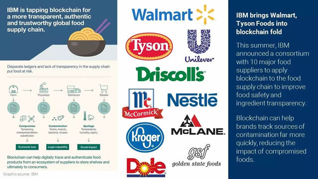 可以说,这次同联合利华做基于区块链的媒体购买整合,就是IBM区块链+供应链项目地延伸。 而这也不是联合利华同IBM第一次展开基于区块链技术的合作。2017年8月份, 联合利华就同沃尔玛、雀巢等食品、零售公司加入了IBM基于区块链技术的食品安全联盟,帮助食品供应商收集食品来源、质量和物流等情况,提升食品生态的透明性和安全性。这样看来,联合利华之所以选择跟IB整合媒体购买,想必是食品安全联盟合作的较为愉快,认可了区块链在供应链透明化上的价值。