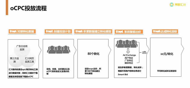DMP营销图解 2、OCPC (optimization cost per click):目标转化出价 是经过“优化”后的CPC,系统会在广告主的出价基础上,基于多维度、实时反馈以及历史积累的海量数据,并根据预估的转化率以及竞争环境智能化的动态调整出价,进而优化广告排序,帮助广告主竞得最适合的流量,并降低转化成本。是一个主动寻找精准用户的过程,在稳定流量的同时控制投放成本和人力操作成本,也使广告投放更便捷。