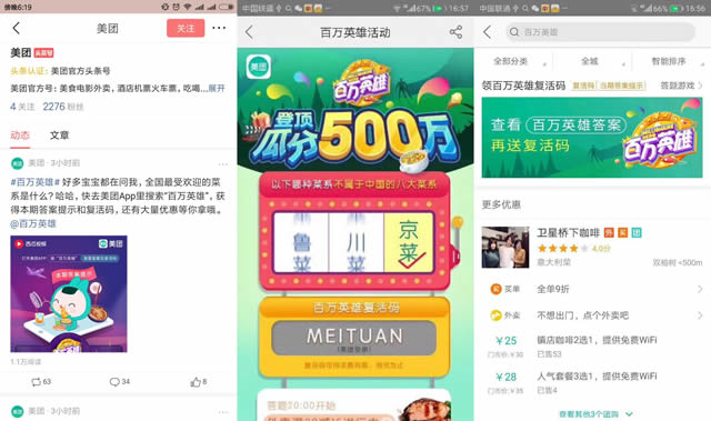 4.问题定制:怎样才能让品牌更深入人心?为品牌定制问题是不二之选。广告狂人专场可以看到,几乎每个问题都进行了巧妙的设计,与品牌完美融合。第二题“缺乏维生素C易引起以下哪种疾病”,看似是生活常识题,给出答案后主持人说出“汇源补充维生素C,有汇源才叫过年”;第10题“《加勒比海盗》中杰克船长驾驶的船叫什么号”,看过《加勒比海盗》的用户一定会脱口而出“黑珍珠号”,随之主持人介绍大众点评推出“黑珍珠餐厅指南”,中国人自己的美食指南……每个精心设计的问题背后,都有一个美好的品牌故事,让用户与品牌皆大欢喜。 身为行业领先者,西瓜视频引领营销开拓创新 百万英雄自身的火爆与被这么多品牌主认可绝非偶然。如今的今日头条已经成为一个超级内容平台,为西瓜视频提供无可比拟的资源支持。让我们看一下今日头条为《百万英雄》给出的重磅资源:今日头条APP首页“答题赢钱”、西瓜视频、抖音短视频、火山小视频、内涵段子、悟空问答、懂车帝……每一款产品都是细分领域的佼佼者,让《百万英雄》自诞生之日起便拥有强大的资源支持,具备得天独厚的综合优势。 《百万英雄》上线未满两周,西瓜视频即在App Store总排行榜一举折桂。并非独立的答题APP,而是内嵌在拥有累计2亿用户的西瓜视频内,《百万英雄》参与人数轻松突破510万实在意料之中,这一数字仍在不断攀升。秉承着“始终创新”的领先者精神,《百万英雄》在营销上也给出了漂亮的示范与极佳的营销效果数据。 据悉,1月16日的品牌主合作专场将随之开启,作为科技先锋的一加手机将成为首个单独合作品牌主,与西瓜视频共同创新营销。途虎养车、游族网络、OPPO也已牵手合作,1月19日、1月20日的华少专场会有惊喜,不可错过。《百万英雄》广告狂人专场已创造营销历史,未来会有更多玩法,西瓜视频邀请更多品牌主携手开拓创新!