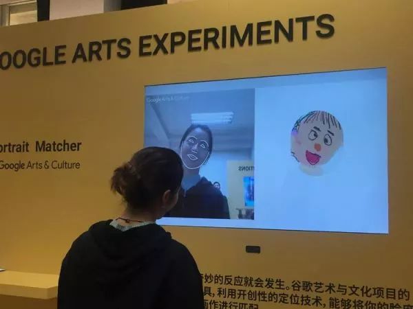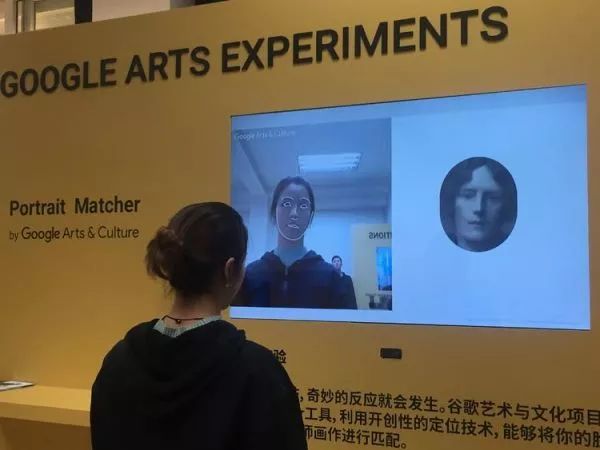 Google Portrait Matcher展区 系统会根据你的脸型来匹配相似的艺术人物肖像,转动脑袋,肖像也会不一样。