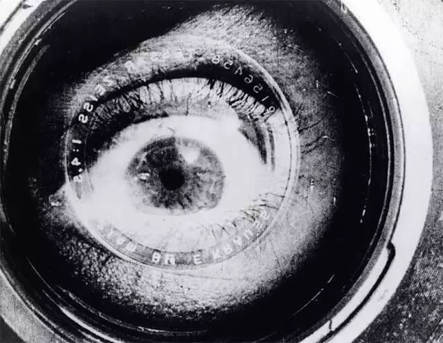 (图片来源:影片《持摄影机的人》) “电影眼睛派”的主张在于:电影摄影机就像人的眼睛一样,甚至拥有比人眼更强大的观察世界纪录世界的能力,可以“出其不意地捕捉生活”。“电影眼睛派”反对叙事性电影,反对人为搬演,排斥演员、化装、布景、照明和摄影棚中的艺术加工,认为可以通过蒙太奇技巧重新组织自然形态的实拍镜头,从而在意识形态的高度上表现“客观世界的实质”。电影必须成为“观察的大师——眼睛看到的生活的组织者”,强调选择重要的观察瞬间的必要性,主张按照联想原则和相应节奏组织素材,通过蒙太奇手法强化情绪感染力,引导观众达到明确的思想结论,最终再通过影像和文字(政治口号字幕)的蒙太奇来解释事件的政治涵义。 这个理论学派在随后的时间中,也不断影响着世界电影尤其是非虚构类影像的发展。比如拍摄了《尼斯印象》的让·维果、拍摄了《四万万人民》、《愚公移山》的伊文思、记录电影鼻祖格里尔逊、英国自由电影、新现实主义。60年代让·鲁什的法国的“真实电影”,更是以“电影眼睛派”为榜样,创作了反映社会现实的影片。而“真实电影”一词就是“电影真理报”一词的法文直译。